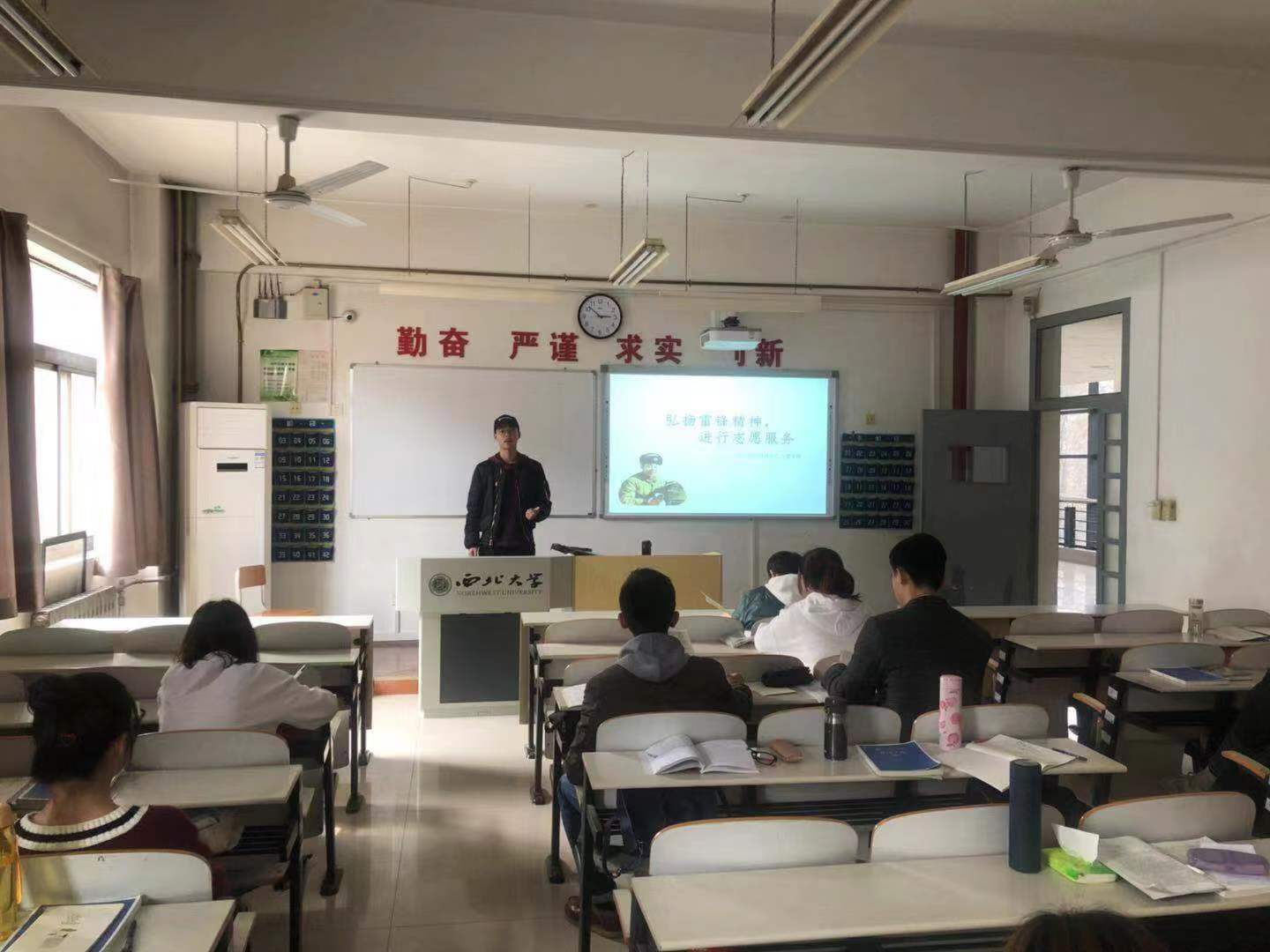 首先,盖丽娅同学向大家介绍了雷锋同志的生平经历以及雷锋精神的深刻内涵,带领大家共同感悟从中折射出的奉献精神与道德情怀。随后,盖丽娅同学为大家播放了相关纪录片选段,并组织大家进行交流讨论。最后,盖丽娅同学结合本月“学雷锋活动月”的实践背景,呼吁大家积极参与志愿服务活动;同时,盖丽娅同学强调,学习弘扬雷锋精神,绝不应该仅仅局限于某一固定的月份、某一特定的历史时期,雷锋精神是永恒的,无论处于什么阶段,我们都需要雷锋精神的引领。